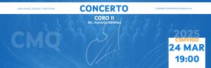 Concerto do Coro II no CSMVigo Dir. Nanette Sánchez > Luns, 24 de marzo de 2025 · 19:00 horas · Auditorio do CMUS Superior de Vigo