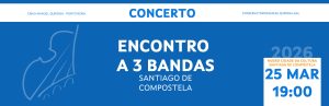 [ Concerto: Encontro a 3 bandas ] Coa participación da Banda Sinfónica do CMUS Manuel Quiroga, que dirixe José Pérez > Mércores, 25 de marzo de 2026 · 19:00 horas Museo da Cidade da Cultura, Santiago de Compostela Fonte: … Segue lendo 25/3/2026 | Concerto: Encontro a 3 bandas