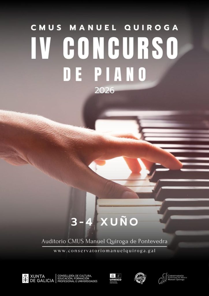 Desde o Departamento de Tecla do Conservatorio Profesional de Música “Manuel Quiroga” de Pontevedra convocamos o IV Concurso de Piano CMUS Manuel Quiroga, que terá lugar no noso conservatorio.
