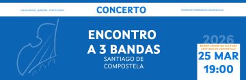 [ Concerto: Encontro a 3 bandas ] Coa participación da Banda Sinfónica do CMUS Manuel Quiroga, que dirixe José Pérez > Mércores, 25 de marzo de 2026 · 19:00 horas Museo da Cidade da Cultura, Santiago de Compostela Fonte: Máis info ...